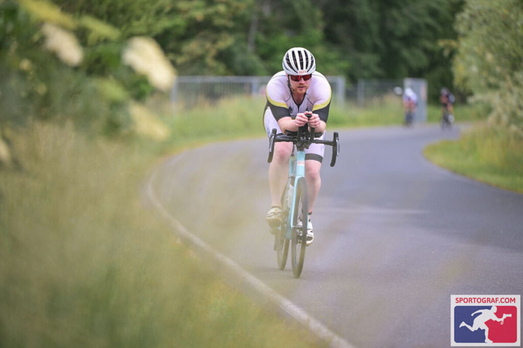 Eine Woche zuvor hatte Julian Henrichs weniger Glück mit dem Wetter. Er absolvierte beim Triathlon in Sassenberg den Grand Prix (1,7km Schwimmen, 67km Radfahren und 15km Laufen). Bei morgendlichem Regen und noch frischen Temperaturen bereitete er seinen Platz in der Wechselzone vor. Kurz darauf fiel am Strand des Feldmarksees dann auch für ihn der Startschuss. Beim Schwimmen bewies er wieder einmal, dass er in den letzten Monaten viel in das Schwimmtraining investiert hat und konnte sich eine gute Ausgangsposition für die folgende Raddistanz sichern. Aufgrund des vorherigen Regens war es hier kalt und nass, doch auch davon ließ er sich nicht zu stark irritieren, sodass er auch anschließend auf der Laufstrecke noch eine starke Leistung abrufen konnte. Nach 4:04 Std. erreichte er das Ziel und resümierte: „Schwimmen war gut, Rad war kalt und Laufen stabil – alles in allem bin ich ganz zufrieden.“