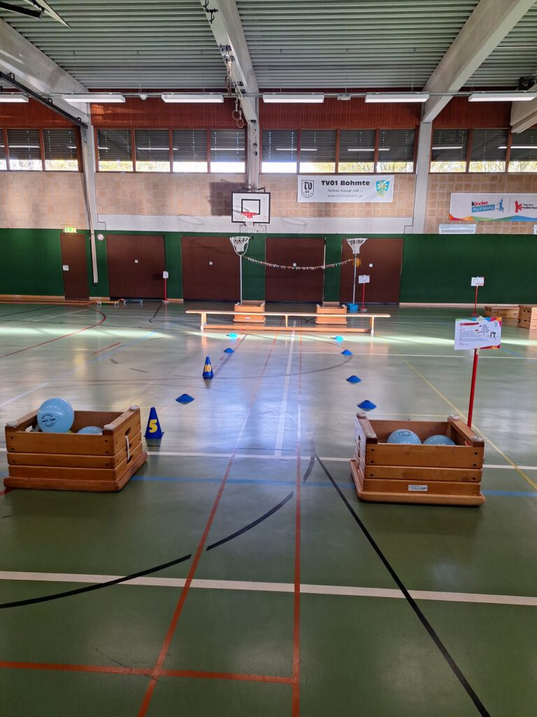 Seit 2017 feiern die Deutsche Turnjugend (DTJ) und der Deutsche Turner-Bund (DTB) am zweiten Novemberwochenende den Tag des Kinderturnens. Jedes Jahr beteiligen sich deutschlandweit hunderte Vereine an der Aktion und öffnen ihre Türen, um Kindern einen bewegt-bewegenden Tag zu bescheren. Seit 2021 ist die Initiative Kinder Joy of Moving als Partner des DTB dabei. Diese tolle Aktion wollten wir sehr gerne unterstützen und haben deshalb in die Turnhalle an der Tilingstraße in Bohmte eingeladen.