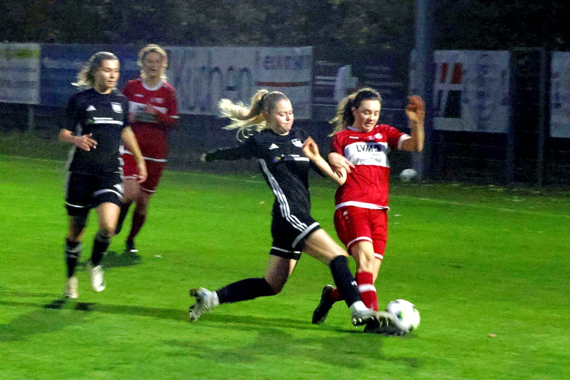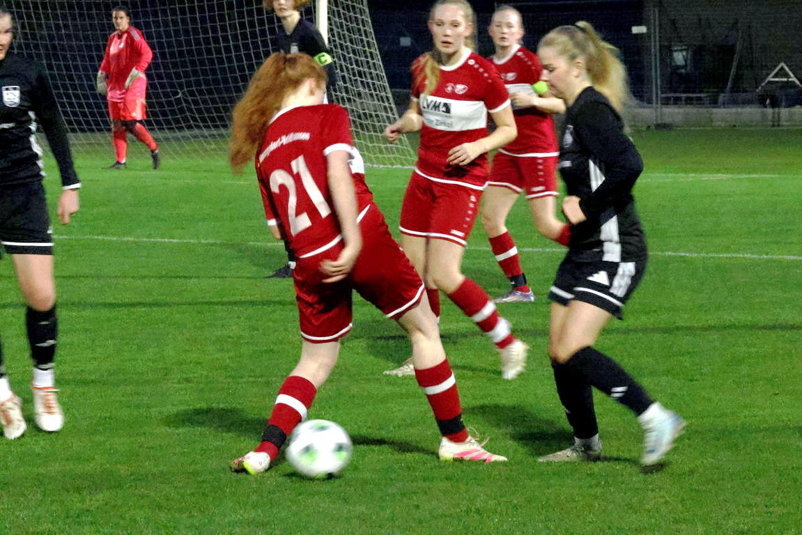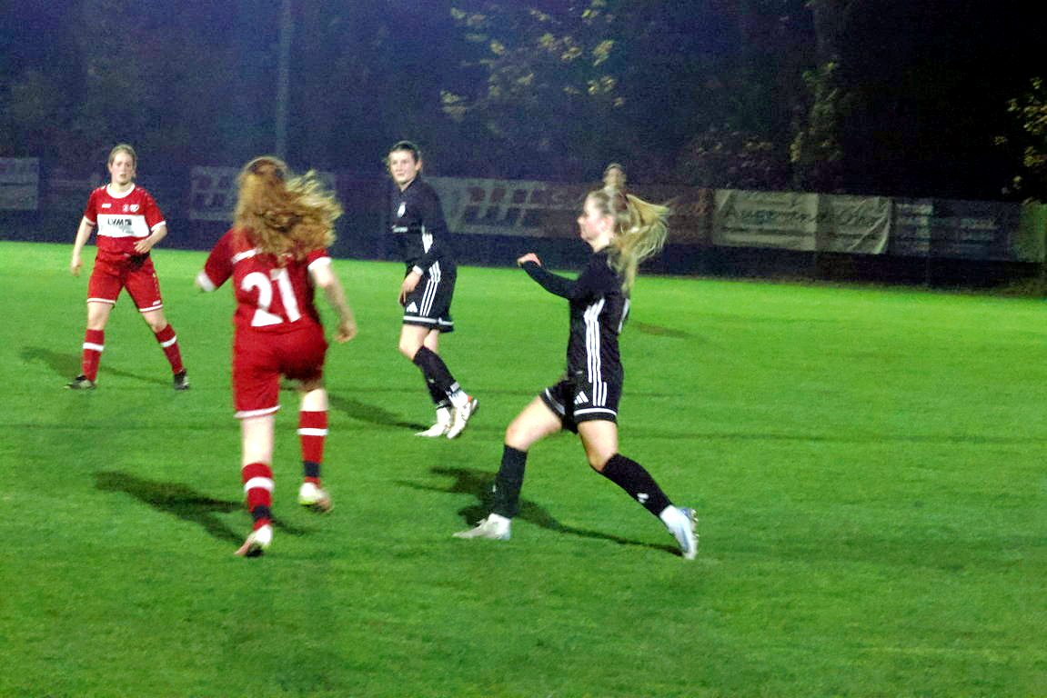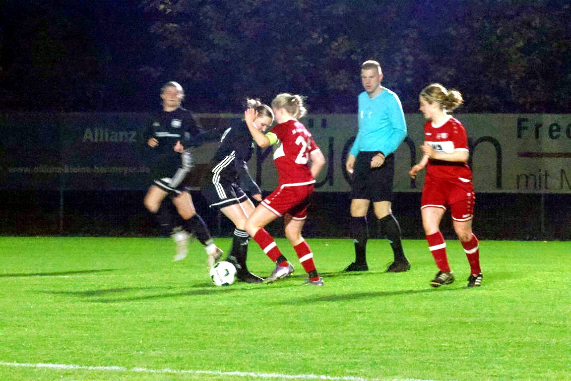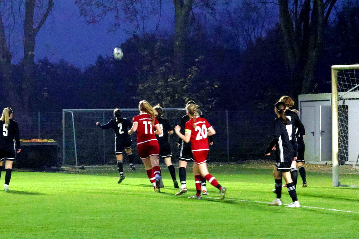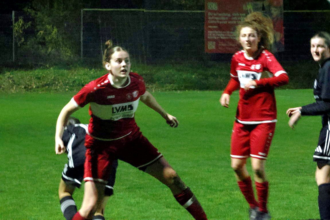 Von Beginn an entwickelte sich eine intensive Partie, mit der 1. Torannäherung durch die Gastgeberinnen in persona Lou Schröder. Doch sukzessive kamen auch die Gäste entsprechend in die Partie. Deren 1. halbwegs gefährliche Torchance verbuchten sie in Minute 14 durch einen Torschuss von Rieke Klokkers, der 0,5m über den Querbalken zischte. Was das Halali für das Offensivspiel der SG Georgsdorf darstellte, die sich im weiteren mehr und mehr dem 0:1 annäherten. Doch die Gäste scheiterten immer wieder entweder am eigenen Unvermögen, oder der vielbeinigen, kämpferisch perfekt eingestellten SG BOS-Abwehr. So blieb es bis zum Pausenpfiff des souveränen Schiedsrichters Sebastian Welkener vom SC Melle 03 torlos. Es war bis dahin eine sehr zweikampfintensive Angelegenheit, ohne aber die ganz großen Offensiv-Highlights, trotzdem für die etwa 35 Besucher sehr unterhaltsam. Vorteile für die Gäste zwar ja, aber die Gastgeberinnen hielten nichtsdestotrotz die Null.