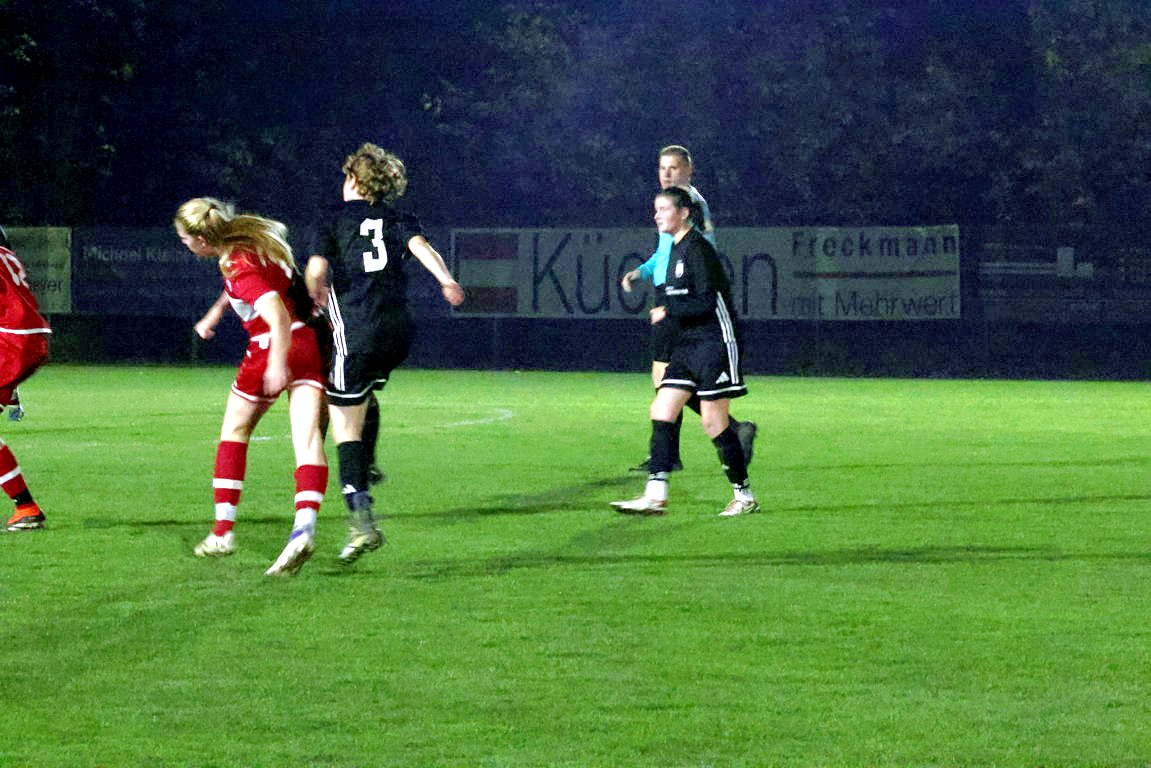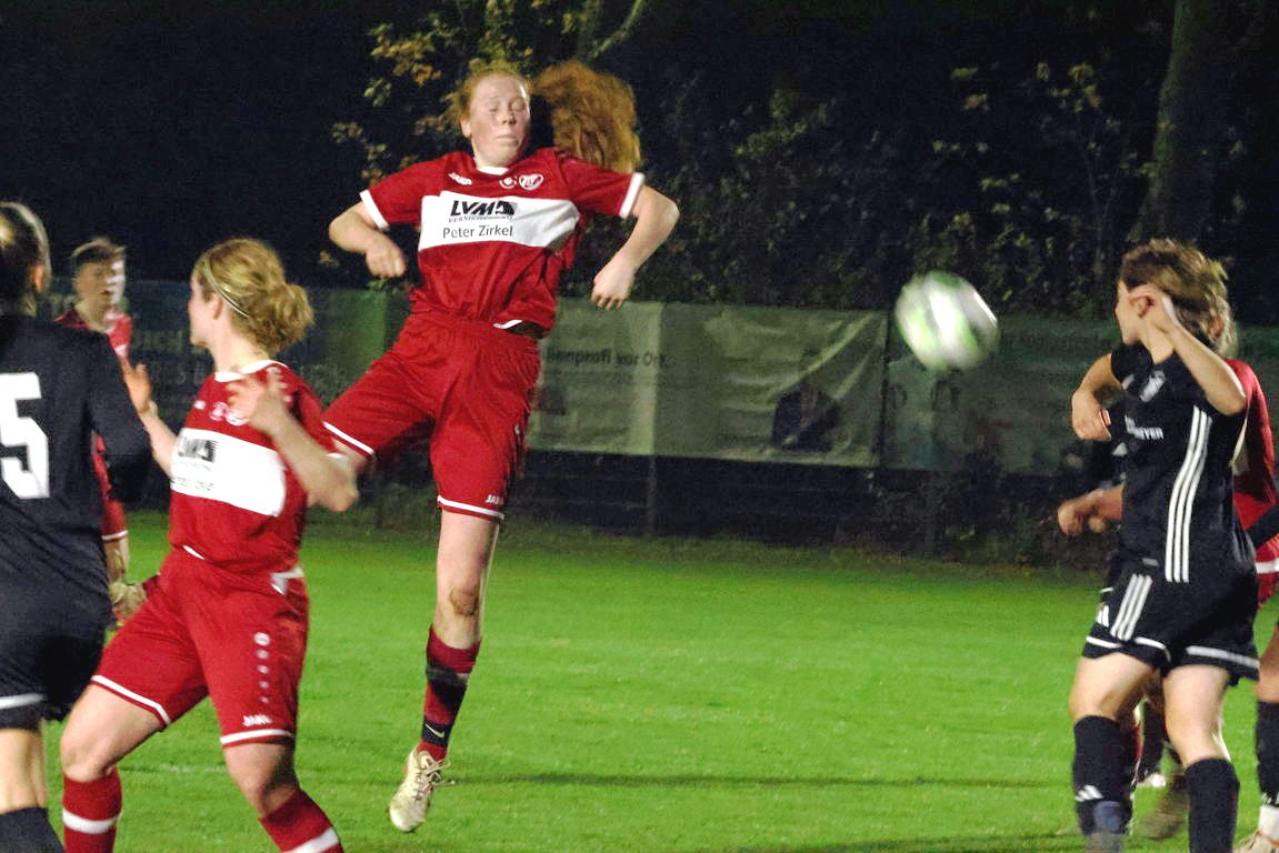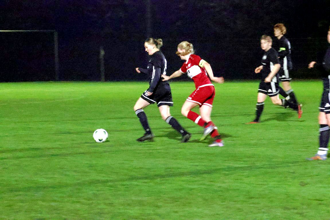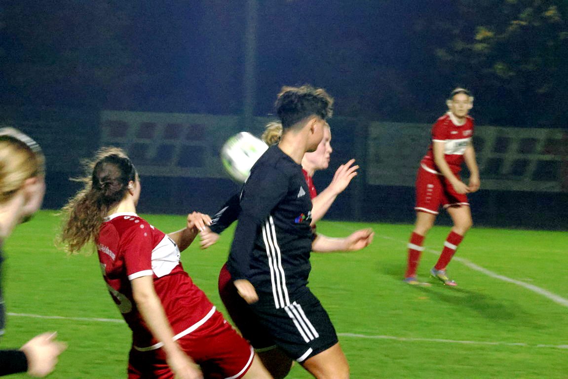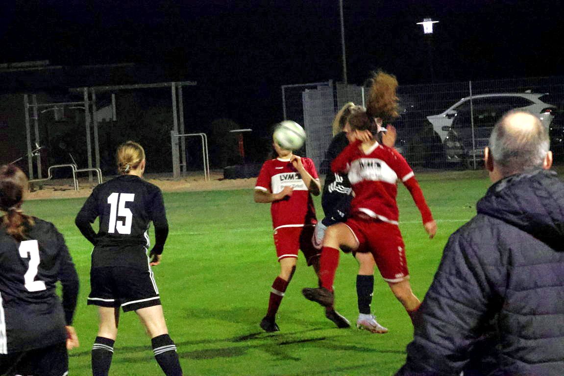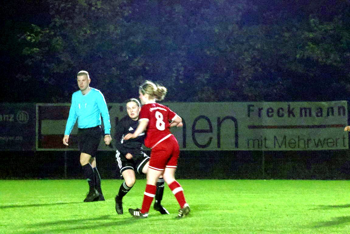 Von Beginn an entwickelte sich eine intensive Partie, mit der 1. Torannäherung durch die Gastgeberinnen in persona Lou Schröder. Doch sukzessive kamen auch die Gäste entsprechend in die Partie. Deren 1. halbwegs gefährliche Torchance verbuchten sie in Minute 14 durch einen Torschuss von Rieke Klokkers, der 0,5m über den Querbalken zischte. Was das Halali für das Offensivspiel der SG Georgsdorf darstellte, die sich im weiteren mehr und mehr dem 0:1 annäherten. Doch die Gäste scheiterten immer wieder entweder am eigenen Unvermögen, oder der vielbeinigen, kämpferisch perfekt eingestellten SG BOS-Abwehr. So blieb es bis zum Pausenpfiff des souveränen Schiedsrichters Sebastian Welkener vom SC Melle 03 torlos. Es war bis dahin eine sehr zweikampfintensive Angelegenheit, ohne aber die ganz großen Offensiv-Highlights, trotzdem für die etwa 35 Besucher sehr unterhaltsam. Vorteile für die Gäste zwar ja, aber die Gastgeberinnen hielten nichtsdestotrotz die Null.
