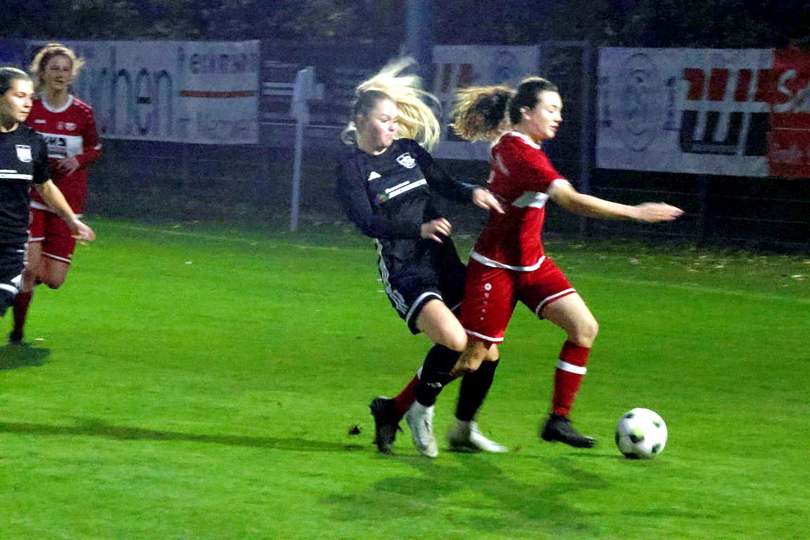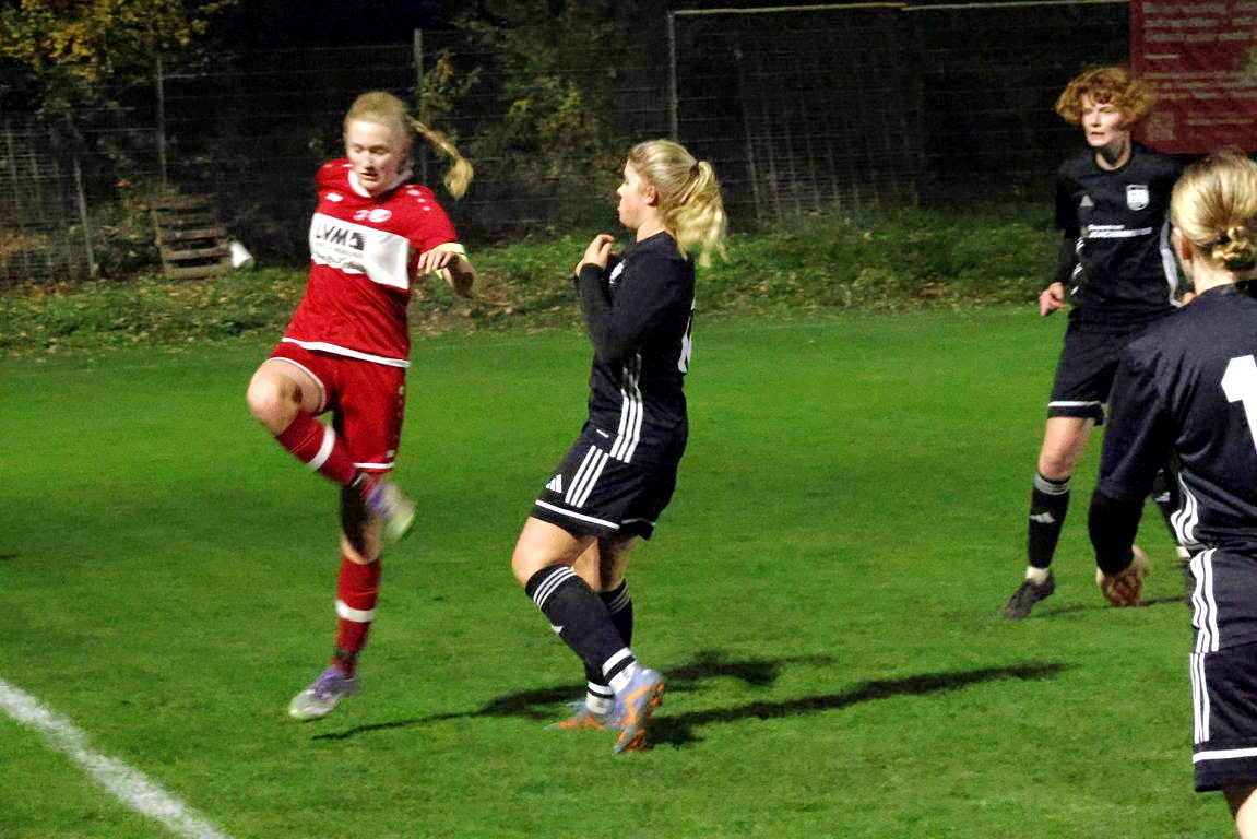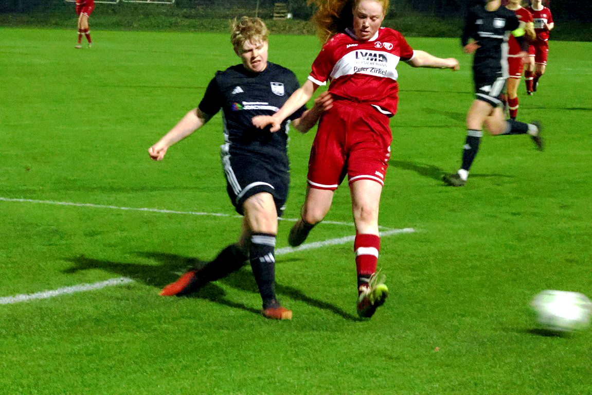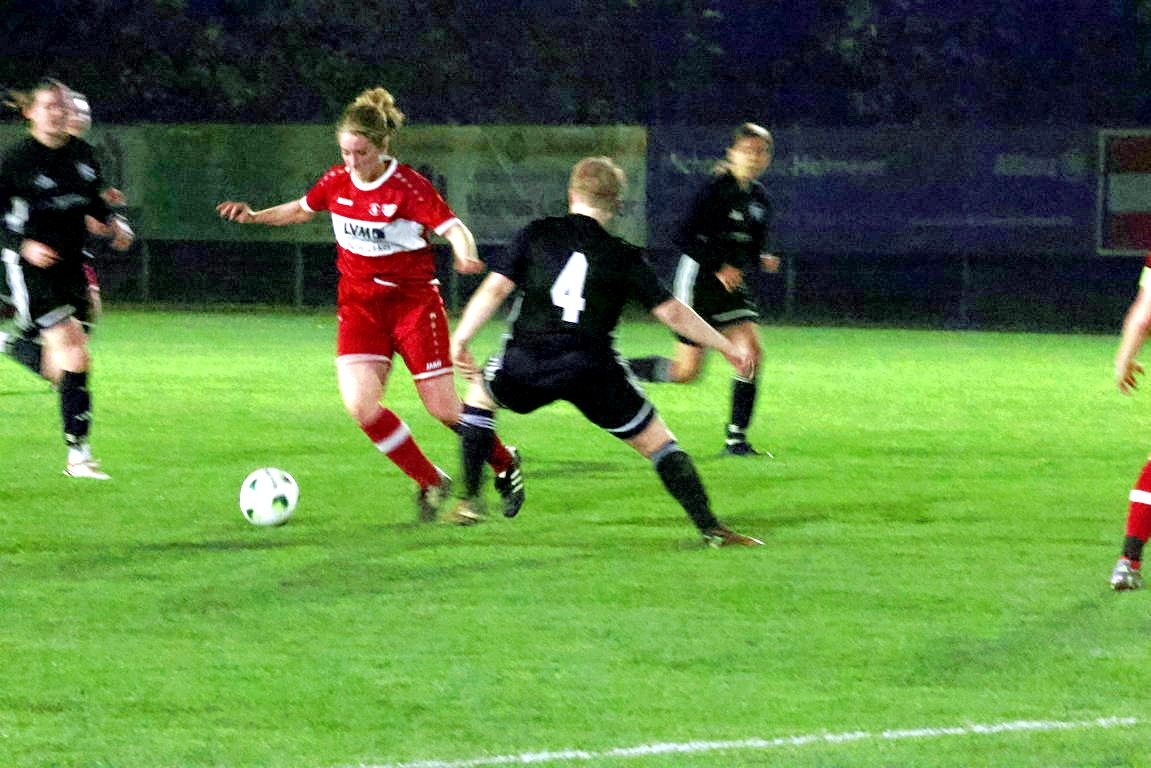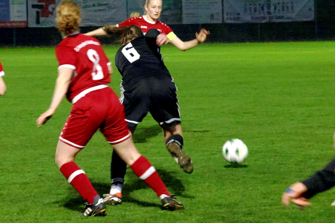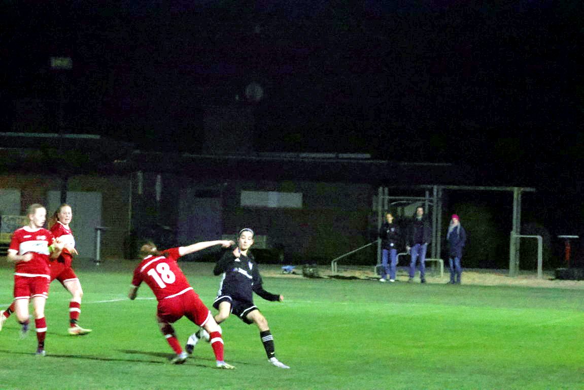 Von Beginn an entwickelte sich eine intensive Partie, mit der 1. Torannäherung durch die Gastgeberinnen in persona Lou Schröder. Doch sukzessive kamen auch die Gäste entsprechend in die Partie. Deren 1. halbwegs gefährliche Torchance verbuchten sie in Minute 14 durch einen Torschuss von Rieke Klokkers, der 0,5m über den Querbalken zischte. Was das Halali für das Offensivspiel der SG Georgsdorf darstellte, die sich im weiteren mehr und mehr dem 0:1 annäherten. Doch die Gäste scheiterten immer wieder entweder am eigenen Unvermögen, oder der vielbeinigen, kämpferisch perfekt eingestellten SG BOS-Abwehr. So blieb es bis zum Pausenpfiff des souveränen Schiedsrichters Sebastian Welkener vom SC Melle 03 torlos. Es war bis dahin eine sehr zweikampfintensive Angelegenheit, ohne aber die ganz großen Offensiv-Highlights, trotzdem für die etwa 35 Besucher sehr unterhaltsam. Vorteile für die Gäste zwar ja, aber die Gastgeberinnen hielten nichtsdestotrotz die Null.