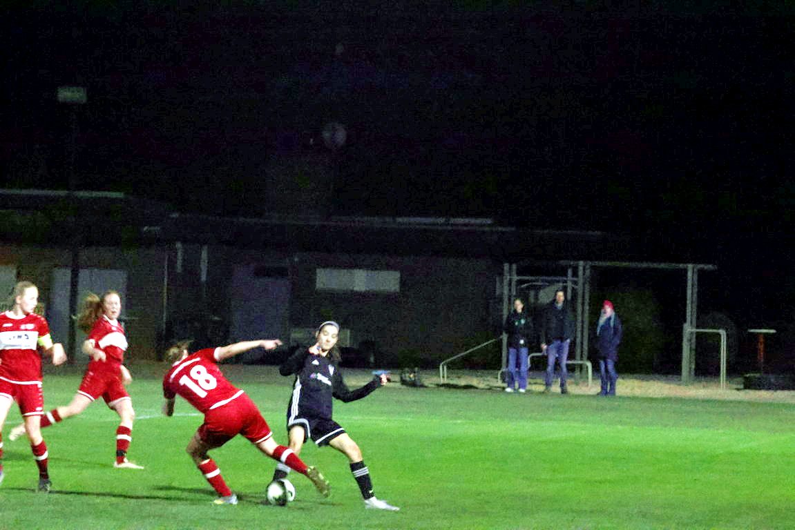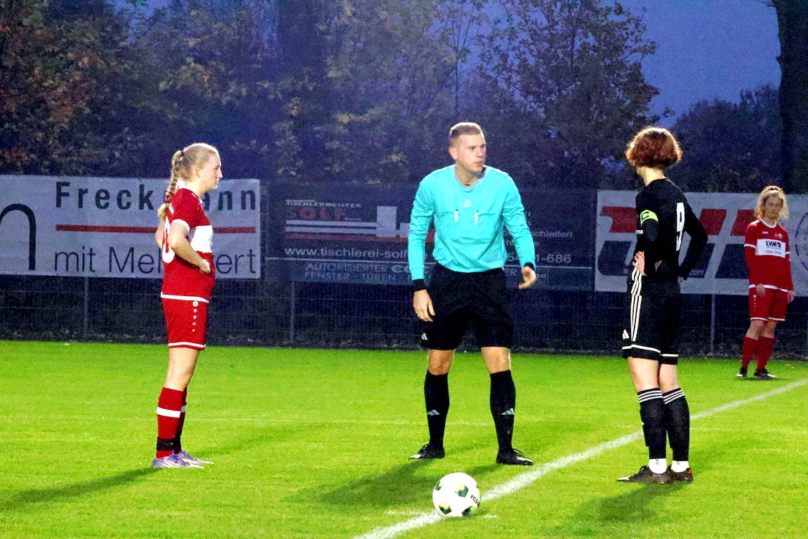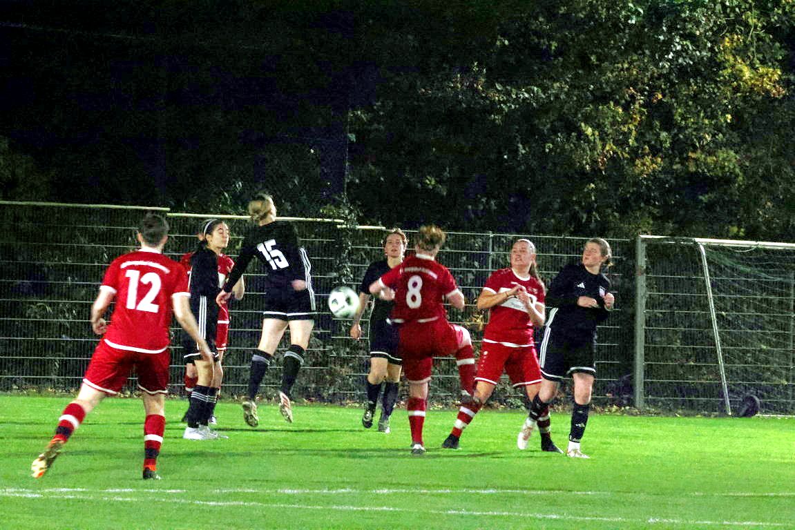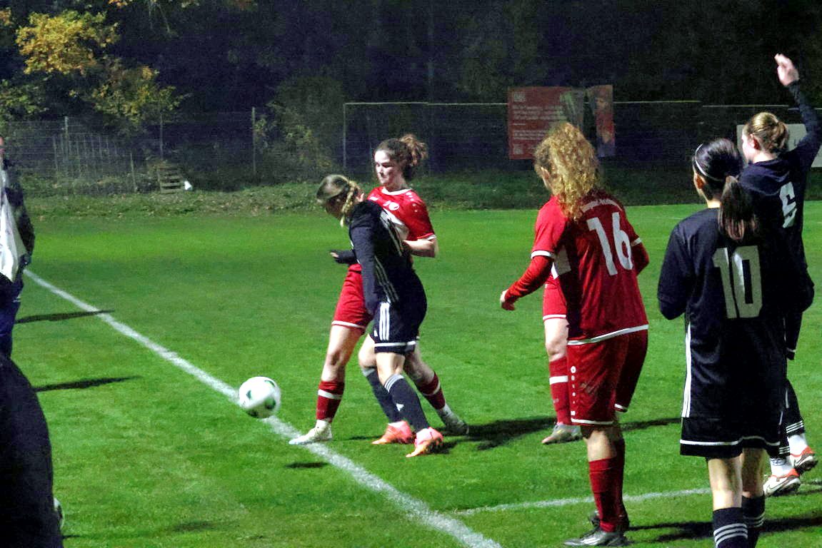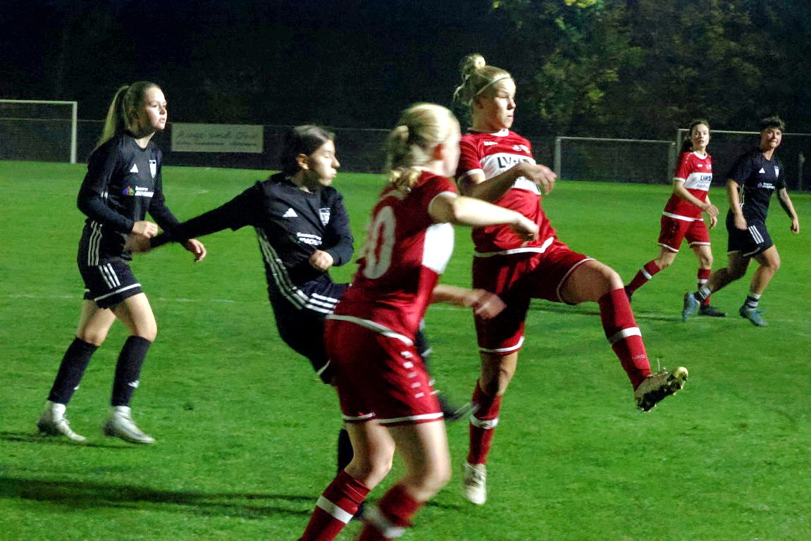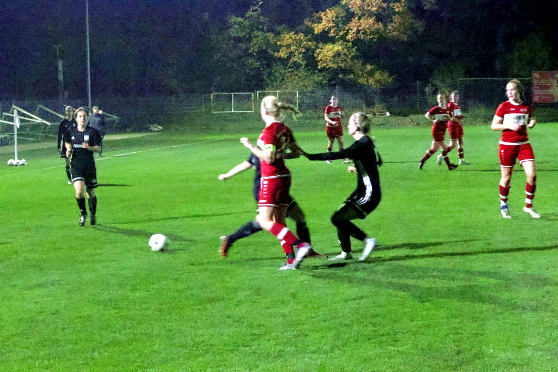 Von Beginn an entwickelte sich eine intensive Partie, mit der 1. Torannäherung durch die Gastgeberinnen in persona Lou Schröder. Doch sukzessive kamen auch die Gäste entsprechend in die Partie. Deren 1. halbwegs gefährliche Torchance verbuchten sie in Minute 14 durch einen Torschuss von Rieke Klokkers, der 0,5m über den Querbalken zischte. Was das Halali für das Offensivspiel der SG Georgsdorf darstellte, die sich im weiteren mehr und mehr dem 0:1 annäherten. Doch die Gäste scheiterten immer wieder entweder am eigenen Unvermögen, oder der vielbeinigen, kämpferisch perfekt eingestellten SG BOS-Abwehr. So blieb es bis zum Pausenpfiff des souveränen Schiedsrichters Sebastian Welkener vom SC Melle 03 torlos. Es war bis dahin eine sehr zweikampfintensive Angelegenheit, ohne aber die ganz großen Offensiv-Highlights, trotzdem für die etwa 35 Besucher sehr unterhaltsam. Vorteile für die Gäste zwar ja, aber die Gastgeberinnen hielten nichtsdestotrotz die Null.
