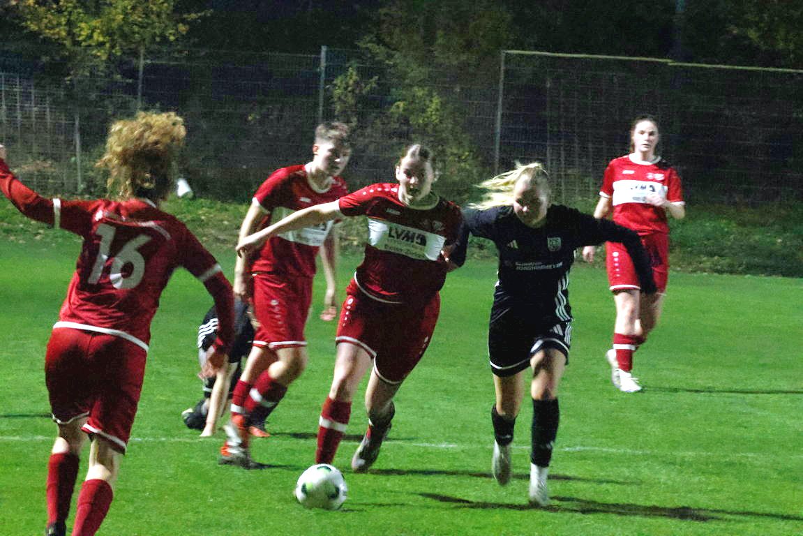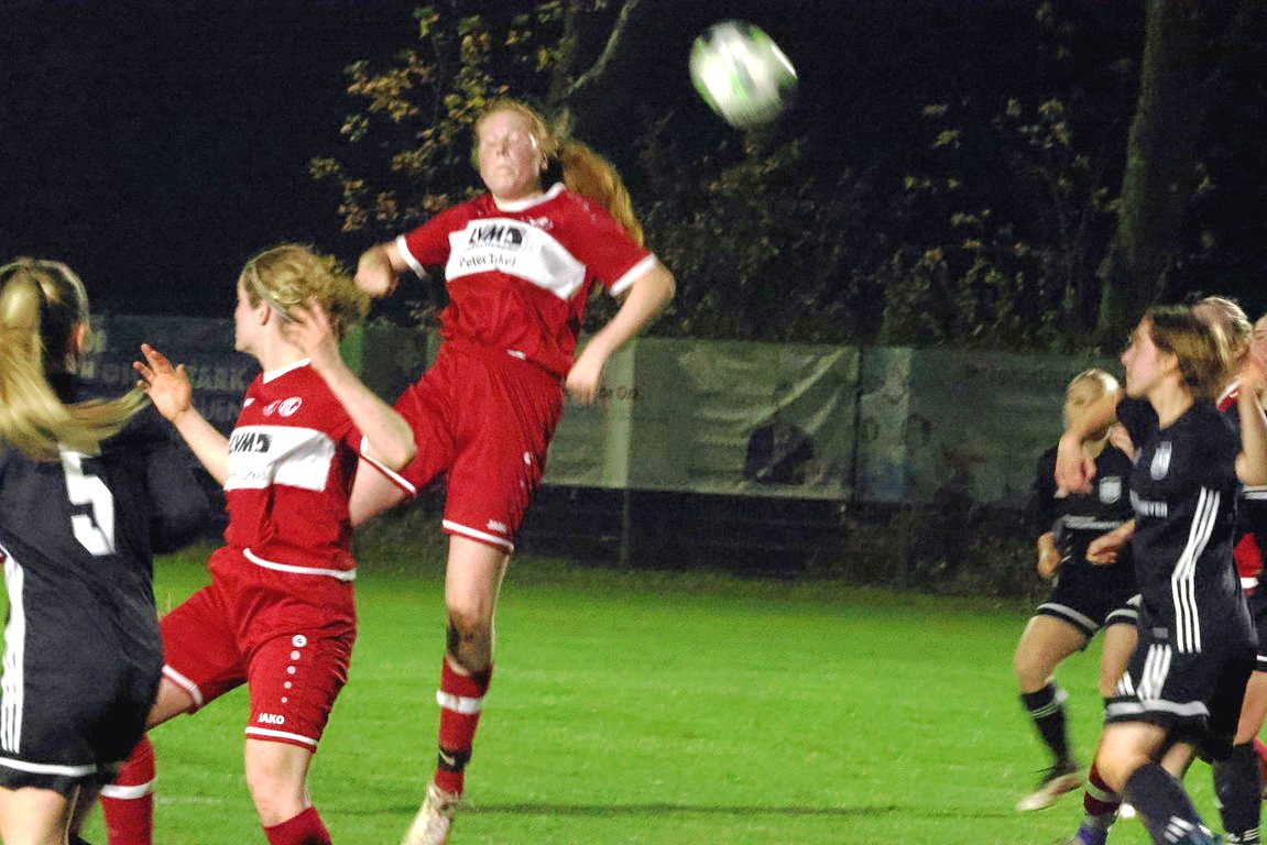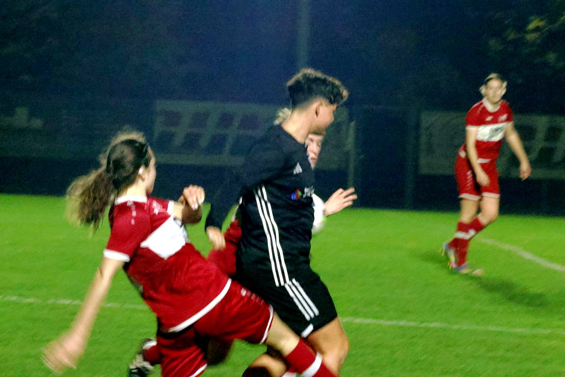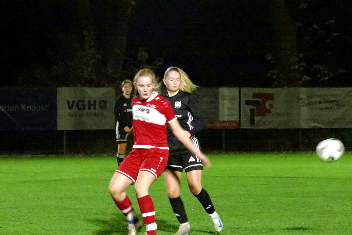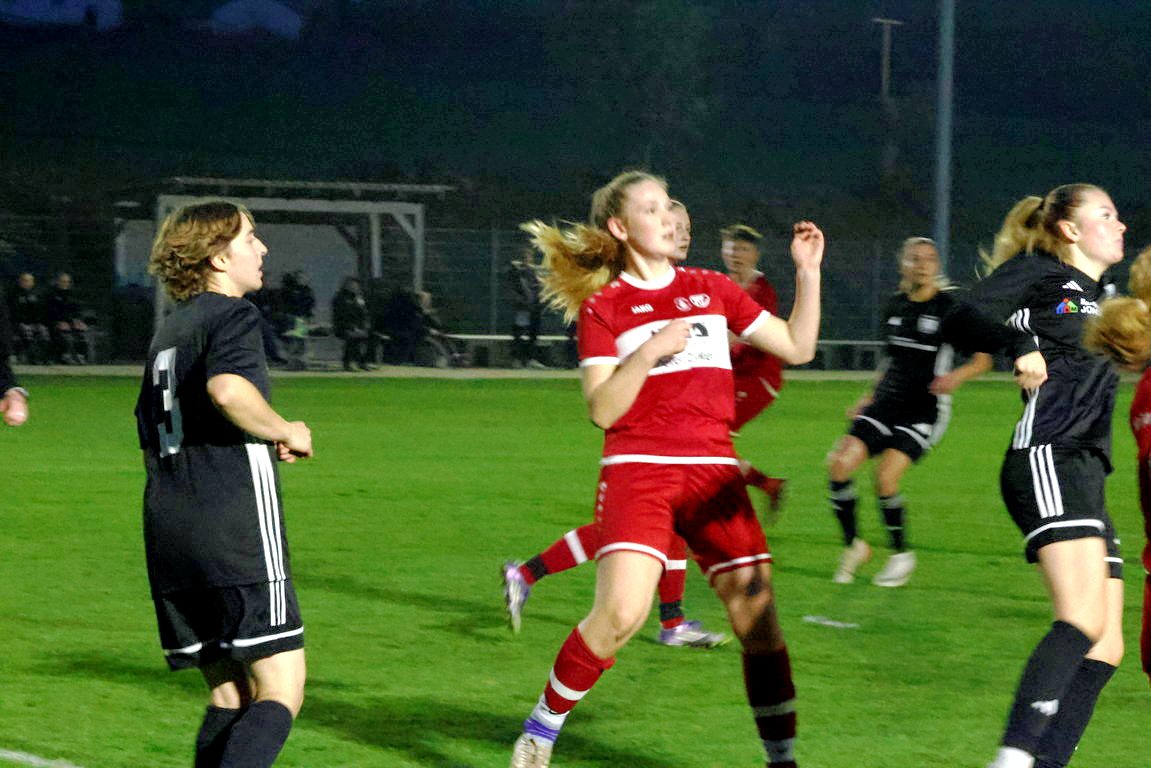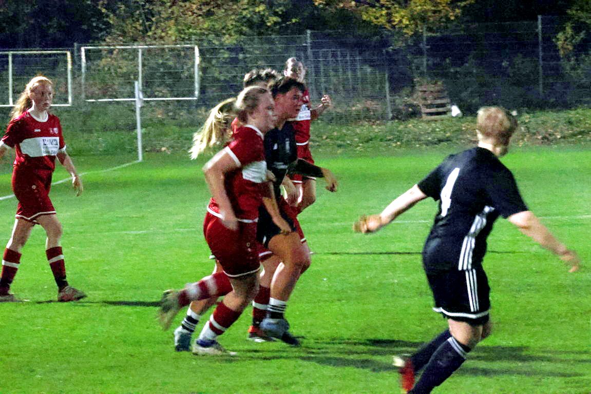 Von Beginn an entwickelte sich eine intensive Partie, mit der 1. Torannäherung durch die Gastgeberinnen in persona Lou Schröder. Doch sukzessive kamen auch die Gäste entsprechend in die Partie. Deren 1. halbwegs gefährliche Torchance verbuchten sie in Minute 14 durch einen Torschuss von Rieke Klokkers, der 0,5m über den Querbalken zischte. Was das Halali für das Offensivspiel der SG Georgsdorf darstellte, die sich im weiteren mehr und mehr dem 0:1 annäherten. Doch die Gäste scheiterten immer wieder entweder am eigenen Unvermögen, oder der vielbeinigen, kämpferisch perfekt eingestellten SG BOS-Abwehr. So blieb es bis zum Pausenpfiff des souveränen Schiedsrichters Sebastian Welkener vom SC Melle 03 torlos. Es war bis dahin eine sehr zweikampfintensive Angelegenheit, ohne aber die ganz großen Offensiv-Highlights, trotzdem für die etwa 35 Besucher sehr unterhaltsam. Vorteile für die Gäste zwar ja, aber die Gastgeberinnen hielten nichtsdestotrotz die Null.