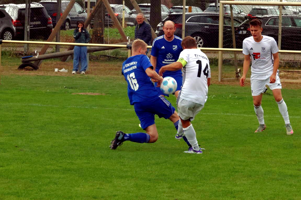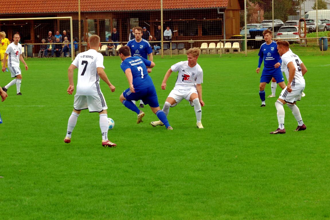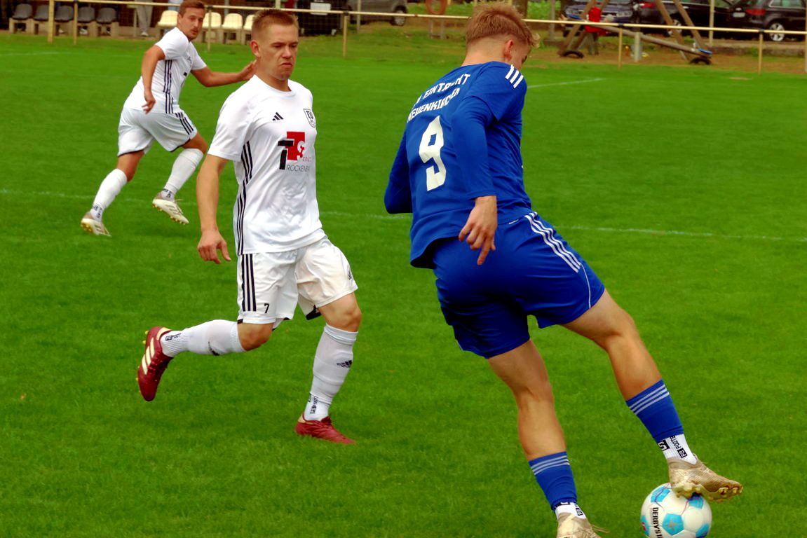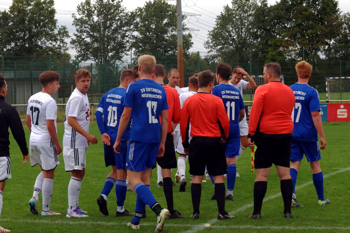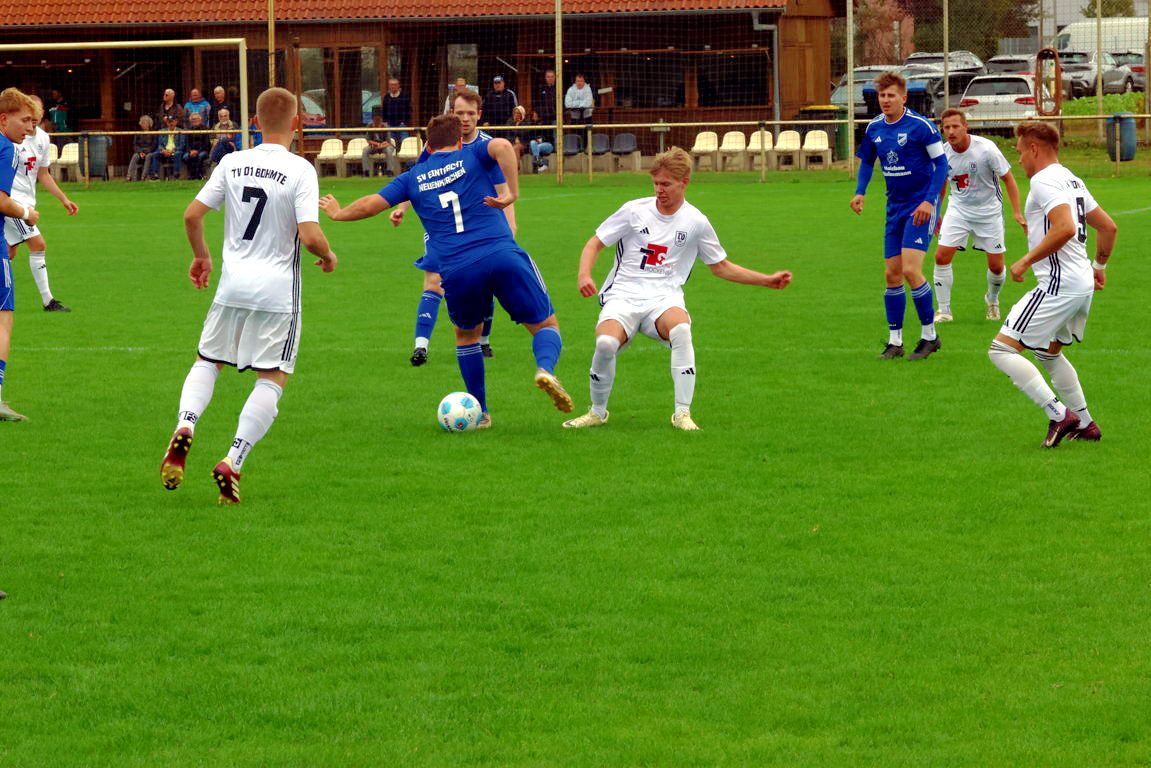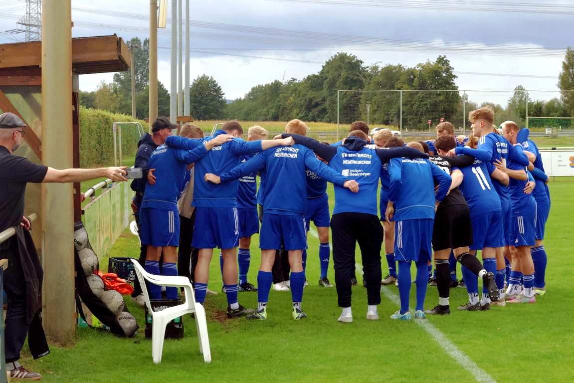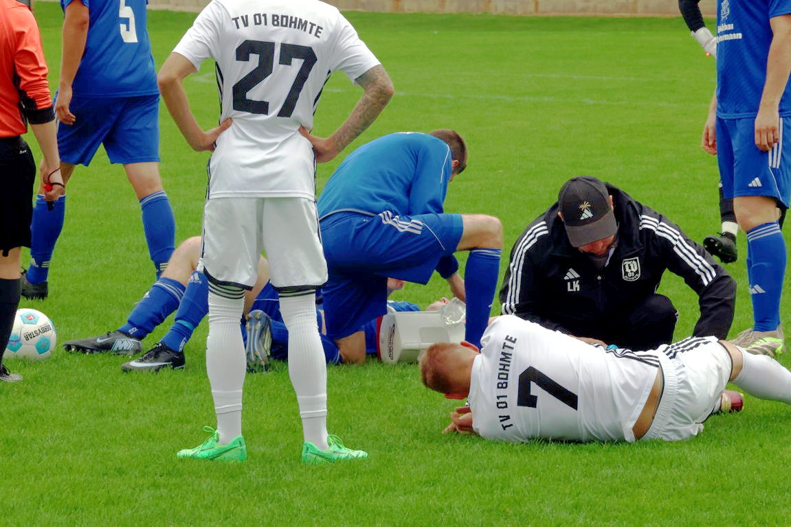 Bohmte von Beginn an mit einer äußerst stabilen Defensive aktiv, die über die gesamte Spielzeit hinweg wenig bis kaum Zwingendes seitens des Bezirksliga-Absteigers zuließ. So konnte man gestützt darauf auch ziemlich zügig die gewohnte Offensiv-Power entfalten. So waren 9 Zeigerumdrehungen rum, da führte der TV 01 mit 1:0. Stani Kolb wurde aus der Zentrale von Luca Oevermann in den Strafraum bedient, schirmte die Kugel gut gegen die Verteidiger ab, und traf aus 8m überlegt halbrechts rein. 1 Minute später war der Doppelschlag der Gastgeber perfekt, es fiel das 2:0. Darüber scheiden sich noch etwas die Geister. Schiedsrichter Luca Knuth wertete dies als Eigentor von Lars Steinemann, und trug es auch so in den Spielbericht ein. Doch aus der Wahrnehmung des Liveticker-Melders dieser Begegnung heraus, gleichzeitig auch Autor dieser Zeilen, trug sich dieser Treffer folgendermaßen zu. Bastian Treseler wühlte sich in den Strafraum, wollte eigentlich quer ablegen auf Stani Kolb, der, in dieser Situation bedrängt von Lars Steinemann, aber nur ungewollt seine Fußspitze irgendwie noch an den Ball bekam. Dadurch bekam die Kugel eine ganz seltsame Flugkurve, und senkte sich aus etwa 10m über SVE-Keeper Ole Langelage hinweg ins Netz. Nach Wahrnehmung des Schiedsrichters und dem einen oder anderen am Sportgelände sei Steinemann zuletzt am Ball gewesen, nach Wahrnehmung des Tickermelders und Autor dieser Zeilen, der nicht die allerschlechteste Sicht hatte, war es Kolbs Fußspitze, die den Ball ins Tor bugsierte. Beleg dafür auch der Jubel von Kolb Bruchteile von Sekunden nach dem Einschlag. Ob man nun also das Eigentor von Steinemann wertet, oder doch Kolb als Torschützen nennt ist sicherlich absolut müßig, hier von dieser Stelle aus sei Kolb der Treffer gutgeschrieben. Bedenklich in der Situation war halt nur, was bis zum Schreiben dieser Zeilen anhält, das ein bestimmtes TV 01-Mitglied meint, hinter dem Rücken des Melders, ohne diesen direkt anzusprechen, permanent dessen Ticker torpedieren/ändern zu müssen. Aber sei es drum. Bohmte hatte seinen Offensivmotor am Laufen, und Neuenkirchen wirkte überrascht, musste sich sammeln. In Minute 17 musste TW Langelage seinen Strafraum verlassen, um per Grätsche soeben noch vor Fabio Grelha klären zu können. Bis Minute 38 musste der TV 01 dann aber verletzungsbedingt 2x wechseln, in der Phase dürfte sich deswegen möglicherweise leichtes Grummeln im Lager der Bohmter breit gemacht haben. Zumal sich die Gäste nun sukzessive auch offensiv etwas in Fahrt gebracht hatten. Doch wie bereits erwähnt, der TV 01 gestattete dem SVE kaum bis gar nichts, summasummarum eine sehr gute Abwehrleistung der Bohmter. Aber eben auch in diese Phase aufkommender Gäste hinein, markierte Bohmte das 3:0. Querablage am Strafraum von Frederik Schulze-Zumkley auf Stani Kolb, der freistehend aus 18m zentral unhaltbar halbhoch links rein abzog. Schon so etwas wie eine Vorentscheidung? Für Bohmte würde es auf jeden Fall sicher wichtig sein, ohne Gegentreffer in die Pause zu kommen. Das würde das Geschehen in Durchgang 2 sicher vereinfachen. Und der TV 01, der noch die eine oder andere kleinere Möglichkeit besaß, schaffte es, spielte das 3:0 souverän und vorbildlich diszipliniert in die Halbzeit. Klare und auch hochverdiente Führung der Gastgeber zur Pause. Neuenkirchen bis vielleicht auf 1-2 Abschlüsse offensiv nicht wirklich zwingend und durchschlagskräftig. Mark Barrenpohl musste seinen Jungs in der Kabine kräftig den Kopf waschen, wollte der SVE hier noch was Zählbares aus Bohmte mitnehmen. Die Ackermann-Elf durfte jedoch, wie so manchesmal in der Vergangenheit, in Durchgang 2 nicht den Fehler machen, aufgrund eines vermeintlich sicheren Vorsprungs 1-2 Gänge zurückzuschalten. Dafür war das Ding hier dann doch noch etwas zu wackelig.