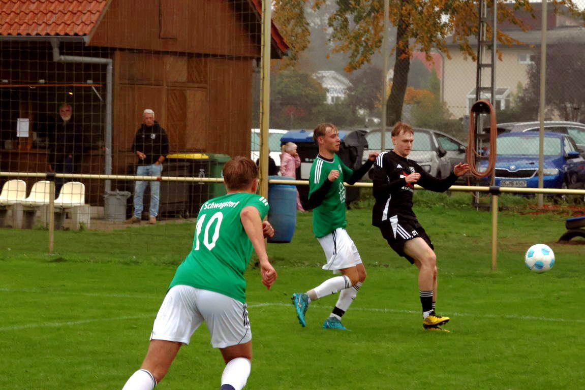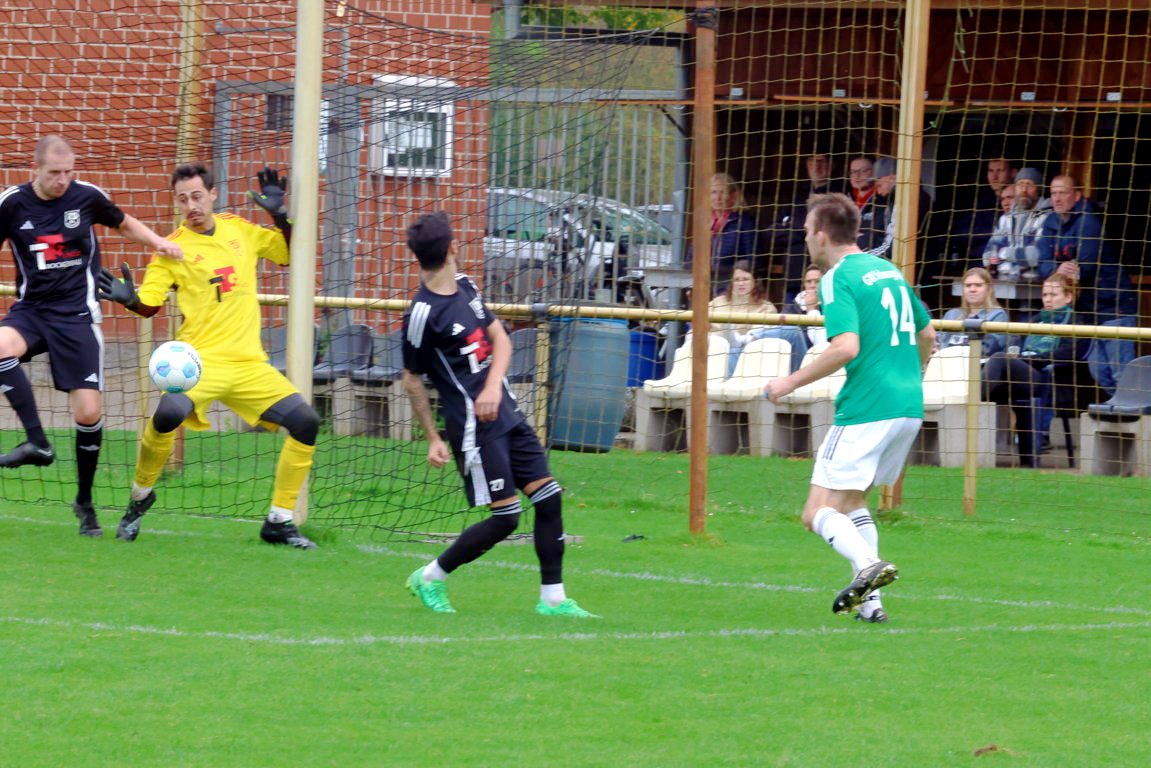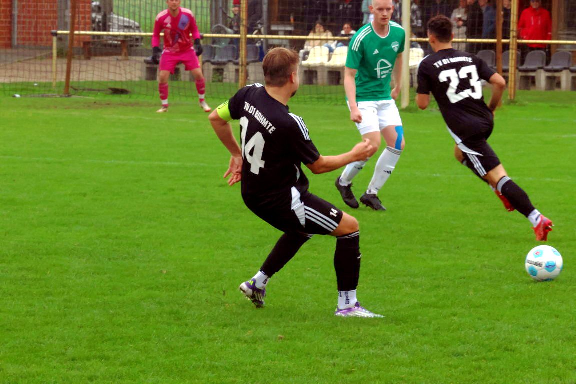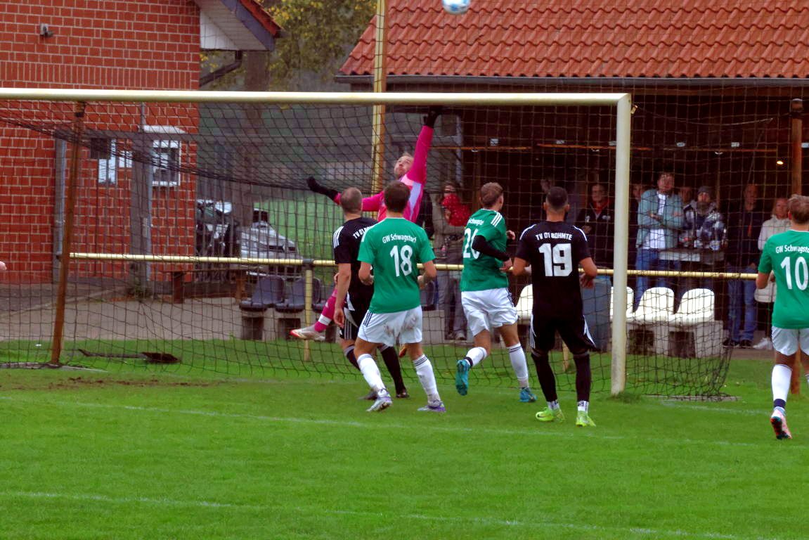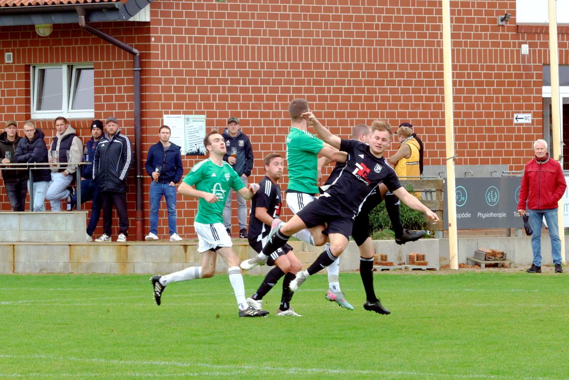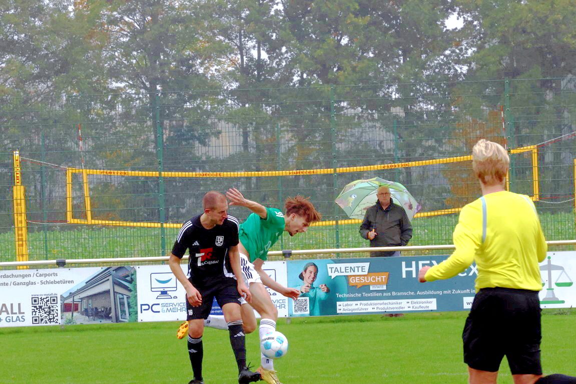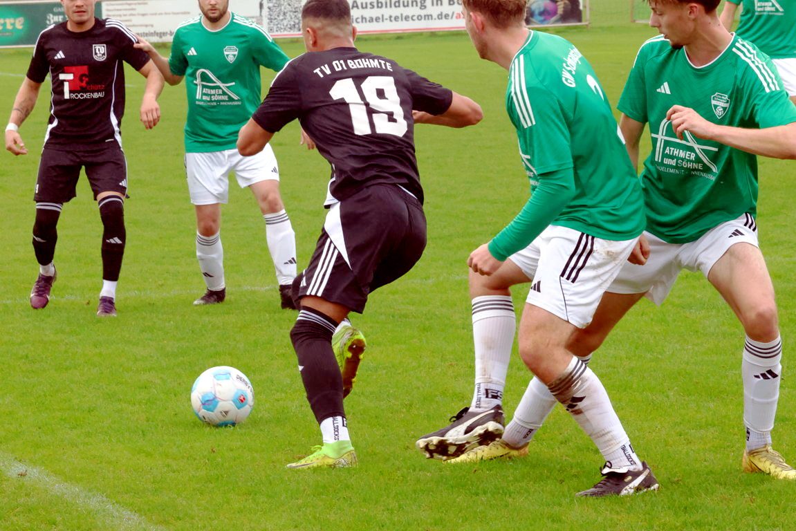 Bei ungemütlichem Nieselregen gingen die Protagonisten dieses Match an, doch die Gastgeber wirkten den kompletten 1. Durchgang irgendwie fahrig und uninspiriert. So hatte der Aufsteiger mit einer disziplinierten Abwehrleistung bis zum Halbzeitpfiff nullkommanull Probleme, den TV 01 zu verteidigen. Im Gegenteil, bei 2-3 Hochkarätern war zur Pause Schwagstorf dem 0:1 irgendwie näher, als Bohmte dem 1:0. Diese entstanden, weil Bohmte sich etwas wackelig präsentierte in der Abwehrarbeit. So entstand kein schönes Spiel auf der Ovelgönne, kein Team war so richtig im Vollgas-Modus, es war alles eher so ein Gewürge. Minute 16, perfekte flache Hereingabe von rechts, kurz vorm freistehenden Abschluss aus 8m zentral rutschte Jannik Wencker jedoch weg. Oder in Minute 25, erneut durch Jannik Wencker. Einen Abpraller nach Freistoß klärte TV 01-TW Bryan Bongiorno sensationell im 1 gegen 1 gegen eben Wencker. Ein Zufalls-Knaller von Rene Frese in Minute 36 aus 13m halbrechts blieb soweit der einzigste Abschluss der Gastgeber in Durchgang 1. So ertönte zeitnah der Halbzeitpfiff. Komplett zerfahrenes Spiel, hauptsächlich auf Seiten des TV 01. Die Gäste taten, was sie im Rahmen ihrer Möglichkeiten sicher können, nämlich diszipliniert verteidigen. Allerdings machte es ihnen ein bisher komplett einfallsloser Gastgeber auch relativ einfach. Für die Zuschauer war das Geschehen sicher nicht sehr schön anzuschauen bisher.