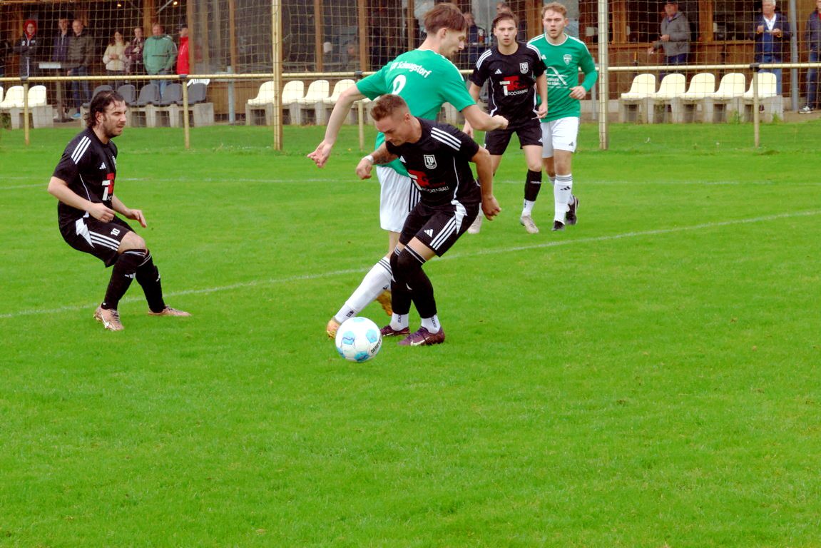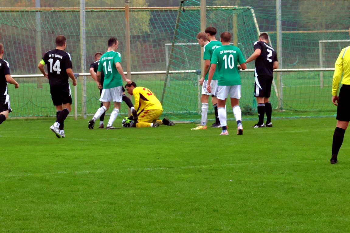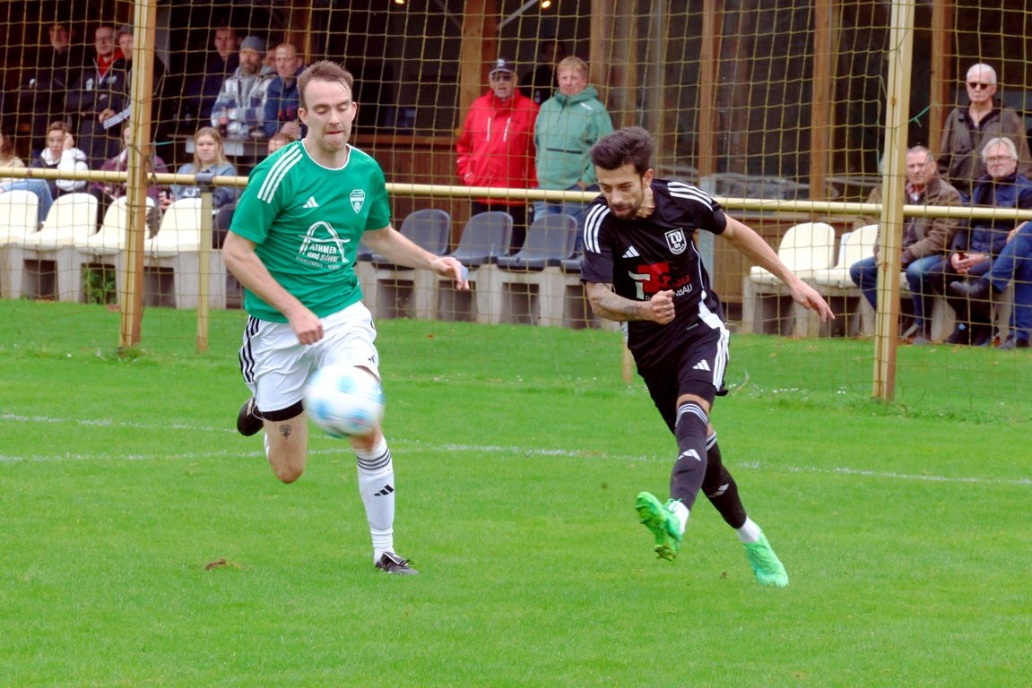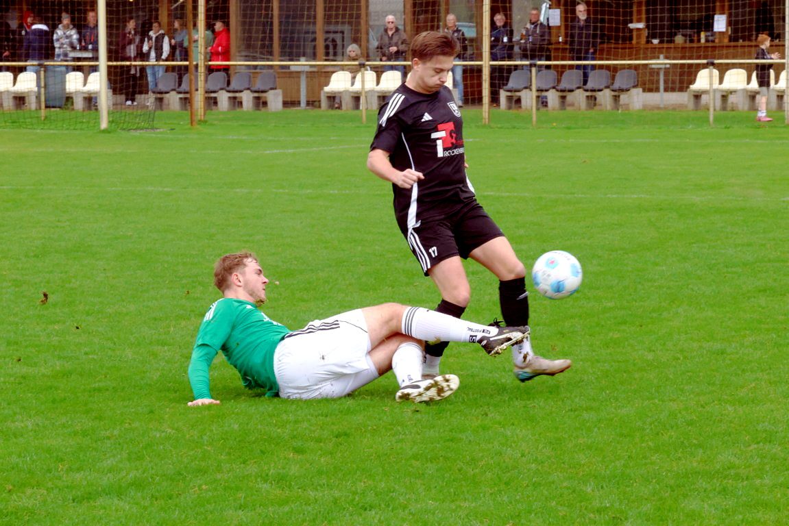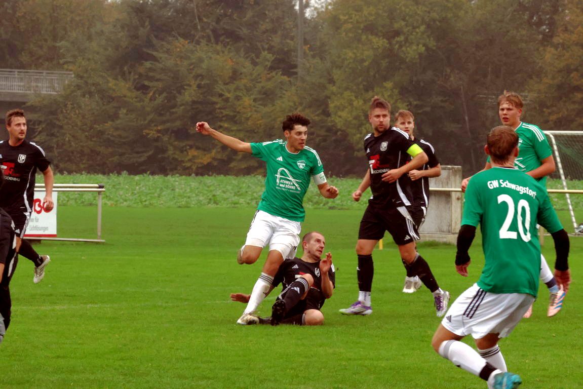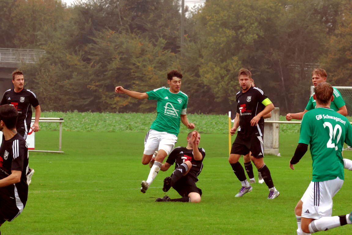 Bei ungemütlichem Nieselregen gingen die Protagonisten dieses Match an, doch die Gastgeber wirkten den kompletten 1. Durchgang irgendwie fahrig und uninspiriert. So hatte der Aufsteiger mit einer disziplinierten Abwehrleistung bis zum Halbzeitpfiff nullkommanull Probleme, den TV 01 zu verteidigen. Im Gegenteil, bei 2-3 Hochkarätern war zur Pause Schwagstorf dem 0:1 irgendwie näher, als Bohmte dem 1:0. Diese entstanden, weil Bohmte sich etwas wackelig präsentierte in der Abwehrarbeit. So entstand kein schönes Spiel auf der Ovelgönne, kein Team war so richtig im Vollgas-Modus, es war alles eher so ein Gewürge. Minute 16, perfekte flache Hereingabe von rechts, kurz vorm freistehenden Abschluss aus 8m zentral rutschte Jannik Wencker jedoch weg. Oder in Minute 25, erneut durch Jannik Wencker. Einen Abpraller nach Freistoß klärte TV 01-TW Bryan Bongiorno sensationell im 1 gegen 1 gegen eben Wencker. Ein Zufalls-Knaller von Rene Frese in Minute 36 aus 13m halbrechts blieb soweit der einzigste Abschluss der Gastgeber in Durchgang 1. So ertönte zeitnah der Halbzeitpfiff. Komplett zerfahrenes Spiel, hauptsächlich auf Seiten des TV 01. Die Gäste taten, was sie im Rahmen ihrer Möglichkeiten sicher können, nämlich diszipliniert verteidigen. Allerdings machte es ihnen ein bisher komplett einfallsloser Gastgeber auch relativ einfach. Für die Zuschauer war das Geschehen sicher nicht sehr schön anzuschauen bisher.