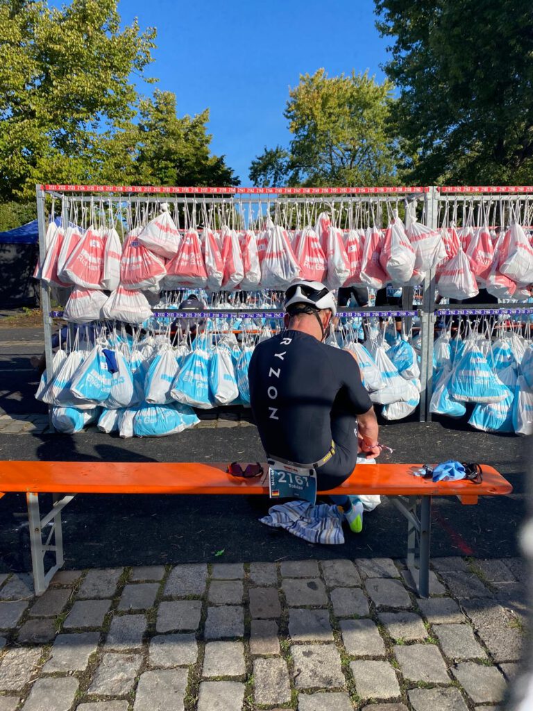 Ebenfalls am Sonntag ging Tobias Hochow an den Start eines Triathlons – beim Ironman 70.3 absolvierte er seine erste Halbdistanz. Neben rund 2.000 anderen Athlet*innen stieg er bei sommerlichen Temperaturen ins Wasser und absolvierte in rund 38 Min. die 1,9km lange Schwimmstrecke. Anschließend warteten zunächst 90km auf dem Rad auf ihn, die er in 2:42 Std. zurücklegte um dann auf den abschließenden Halbmarathon zu wechseln. Nach insgesamt 5:29 Std. erreichte er zufrieden das Ziel und konnte mit dieser Zeit einen Platz im vorderen Mittelfeld belegen.